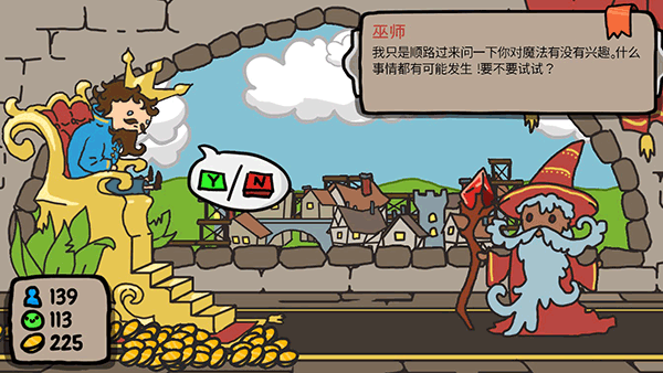 我觉得这款游戏最大的亮点在于它的策略性和随机性。虽然看起来像是乱选也能玩,但其实每个决定都会直接影响国家的资源和发展方向。尤其是巫师这种双刃剑型的角色,完全看运气,有时候可能会让你措手不及。