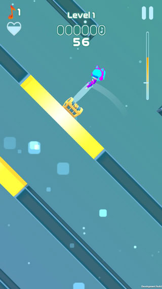 化身电音公主的你将跳跃在音符与色彩之间,获得更多道具,躲避食人花的追踪,最终逃出生天。在跳跃过程中尽可能的跳动在带有音符的位置,遇到比较粗大的地点请长按,否则会不容易下陷,当观察到左右跳动的人物请尽可能的在黄色块的上方点击界面进行下落,多次下落触发连击COMBO,切勿踩在其他位置、