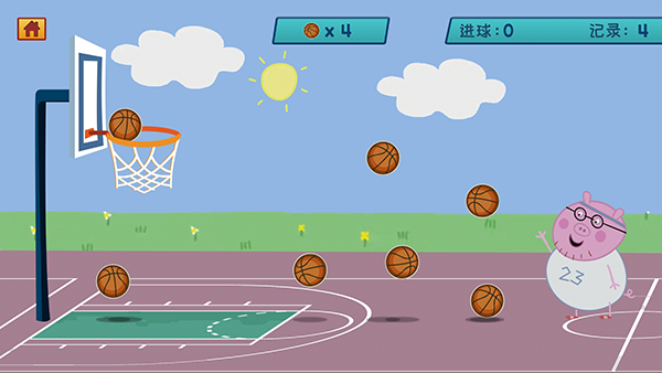 《猪爸爸打篮球》是一款以小猪佩奇为主题的小孩益智游戏,主要让孩子们在轻松愉快的氛围中学习打篮球。游戏中,猪爸爸化身教练,教大家如何投篮,玩法简单又有趣,特别适合小朋友练习和提高投篮技巧。
