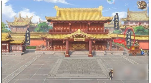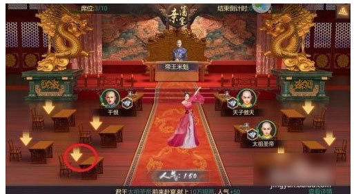 第七步:进入宴会大厅,单击任意一个空座的尖头即可;