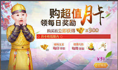 1、月卡月卡肯定是最实惠的投资。购买后立即获取300元宝并且在有效期内福利元宝每日领取,超值礼包每周领取。购买月卡之后可以升级VIP经验等级并获取首充大礼包绝版名臣【兰陵王】初期的准备工作结束之后我们就可以正式开启。