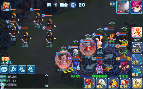 怪物简介:土匪会给我方带上持续掉血(掉血3回合)、受伤(持续减少生命值和技能值)、重伤(回血效果降低两回合)、窃取灵巧、窃取技能值等负面状态;土匪头子有较高的单体伤害并且第四合会给土匪全员加上一个2000血的护盾。