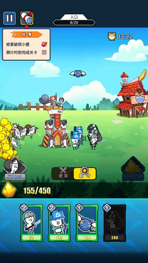 1、多样的兵种,你可以自由的搭配和切换,只为了快速干掉敌人。2、强化士兵的实力,才可以成功的防守住敌人的进攻,快速获胜。