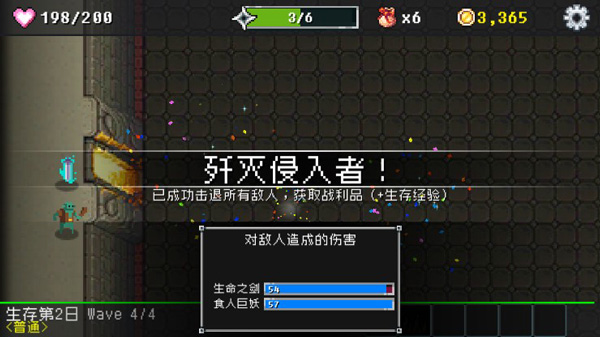 最后要说的,也就是最关键的,那就是战斗了,战斗的场景就是在基地墙边,抵抗入侵者,操作方式就是点击屏幕,然后人物就会攻击了,而下面来说说各个标头都表示着什么,左上角的爱心就是基地的生命,一旦降低到0,那么这局就会失败,中上角的就是子弹数量,如果把子弹都打光了就会耗费一段时间进子弹,旁边的就是获得的装备和金币,右下角的就是技能,使用时要慎重考虑,冷却可是会很久的,可能这局用了,下局都会用不了技能!