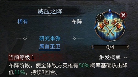 布阵:正式战斗之前的布阵阶段,为己方或敌方英雄提供增益/减益效果。布阵阶段就已经完成了!这是它和BUFF类主被动技能最大的区别。