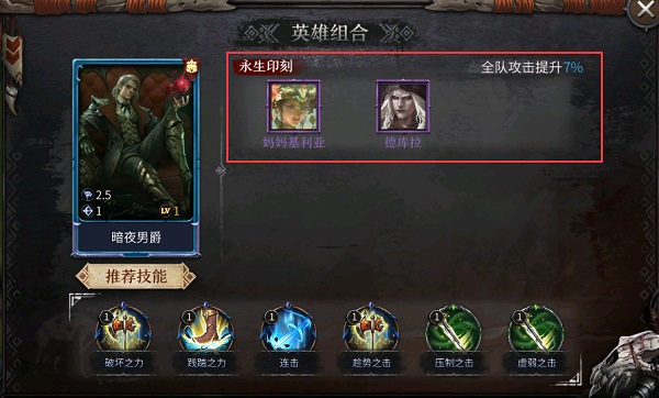 【刺客信条】:全队提升10%攻击。需要队伍中3名英雄都是暗杀者。