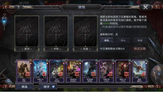 1、演武场是最重要的提升英雄等级的地方,他可以将1级英雄快速提升至15级左右,直接可以攻打3级地,所以每天都要在演武场对英雄进行等级提升,缺点是每日次数有限制,免费2次,还可以在购买2次,有条件的可以每日4次都演习一下。