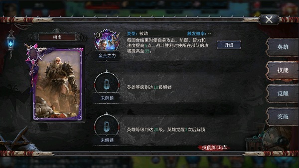每个英雄拥有自己的自带一技能,可以在英雄技能界面进行了解,后续的技能格子达成特定条件后就会解锁。