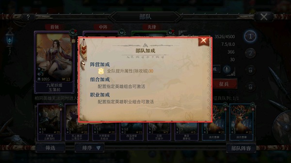 全队三个英雄都隶属于同一阵营时,就会激活阵营加成——全队属性(除攻城)提升30点。