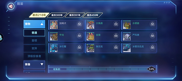 打开随身智能,小伙伴们能够看到一个图鉴选项,进入之后就能看到宠物图鉴,在游戏中,每捕捉驯化一只宠物就能获得相对应的属性加成,这个加成是激活图鉴而得到的提升,可永久有效。
