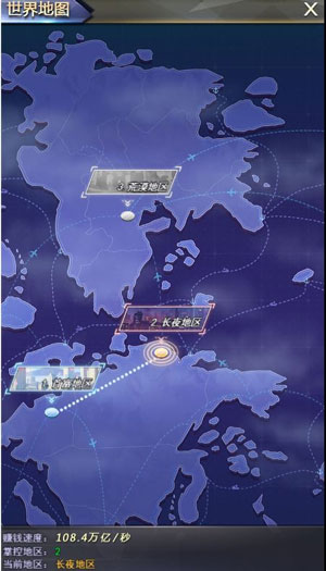 2、通关当前区域后,就可以从世界地图上进入下一个区域,解锁新的关卡和新的建筑等级上限。