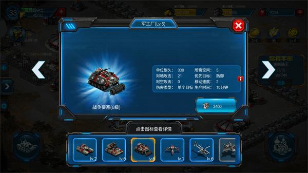 5、通过对资源、军事、防御系统的DIY建造,完成独一无二的迷之军事基地,让对手难以摧毁自己的基地。