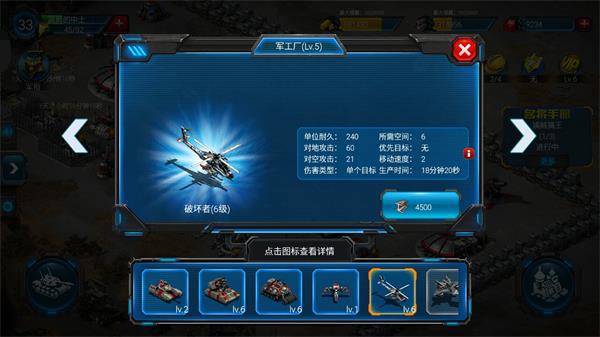 2、当我们有了破坏者(直升机)可以用它作为主要攻击武器,基地5级,当前满级的破坏者是6级,对地攻击60,对空攻击21,耐久240。配合上战争要塞和火炮,胜率会大大提高。但是得优先集中火力打掉敌方对空攻击的防御建筑。这样才能保住飞机输出最大化。