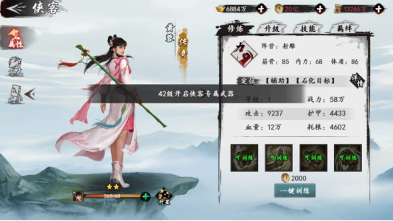 4、侠客技能要有侧重的升级,比如一个辅助侠客就一定要先升级他的辅助技能,否则铜币消耗量太大