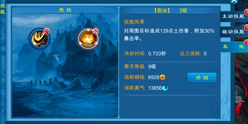 不同职业的主动技能不同,所有主动技能都分为:攻击、辅助攻击,两类。主动技能学习后可以放到技能栏中,只有在技能栏中的技能才可以使用。合理的技能搭配,可以更好地发挥实力。