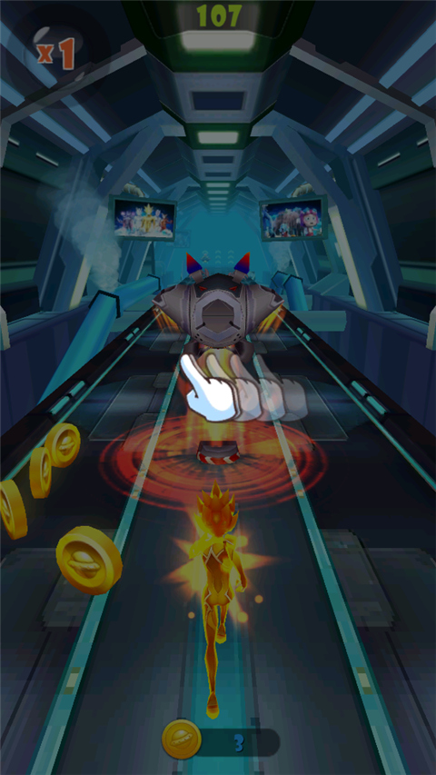 雷神崛起作为赛尔号的第五部大电影,在角色方面与之前的卡通角色有些不同,更加成熟且赋予了超级英雄的概念。本作的角色人物也全都还原自雷神崛起,毕竟正版授权。这是一款跑酷游戏,三维建模加上贴图为你构建了一个通向正义的康庄大道,直线模式与横版跑酷相比拥有更强的代入感,并且在应付危机陷阱时能够感染玩家的情绪,提升游戏的内在趣味。游戏在同一个赛道上有三条道供你自由变向,操作方式为左右移动外加跳跃滑铲,还是熟悉的味道。