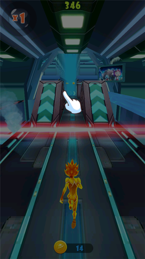 5、碰到横版激光的话下拉屏幕,控制角色下滑,路过障碍;