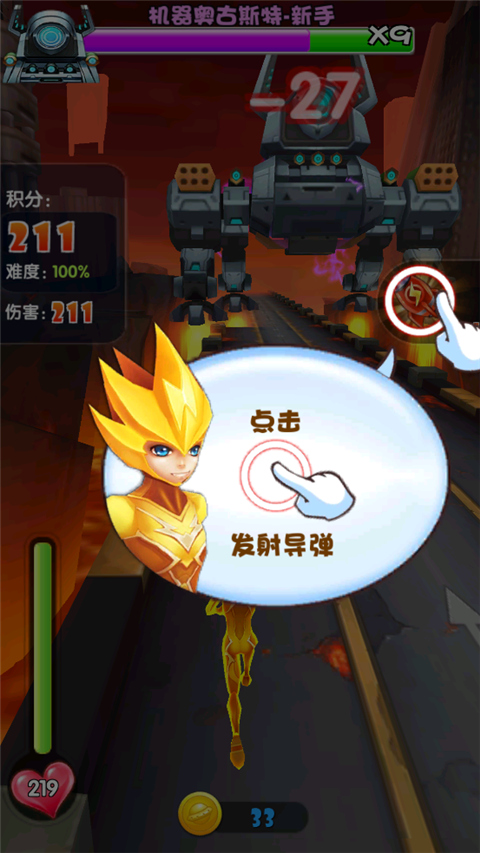9、之后在到关卡尾部,会碰到关卡boss,点击boss,角色会发起炮弹攻击;