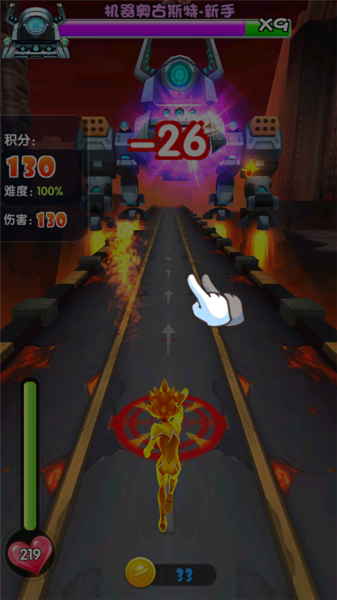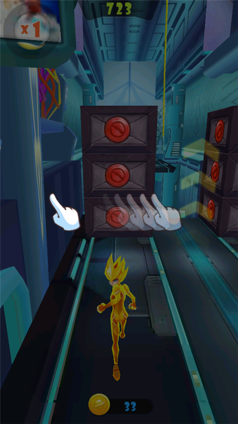 不同的场景有着相同的前进方式,玩家需要通过不停地变道以及上下操作,来躲避不时出现的各类陷阱。电网、滚石还与其他你想到的或是没有想到的障碍不断出现,而你作为超级英雄的控制者,担负着激发他内在潜力的重担,依靠你的双手,让雷伊和他的英雄朋友战胜困难,不断前进。