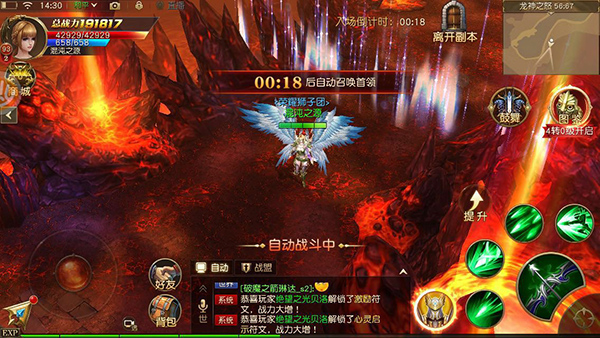 30S准备时间过去后,毁灭龙神将会重临人世,玩家有15分钟的挑战时间,来抵御毁灭龙神的进攻,如果击杀龙神,还可额外获取丰厚奖励。