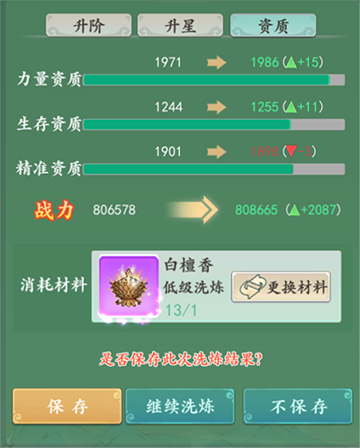 救兵资质:影响了救兵最终攻击、防御、生命、暴击等属性的大小。救兵三个基础属性:修为、根骨、技艺,是通过资质转化为最终战斗属性的。资质可以通过洗练进行提升。