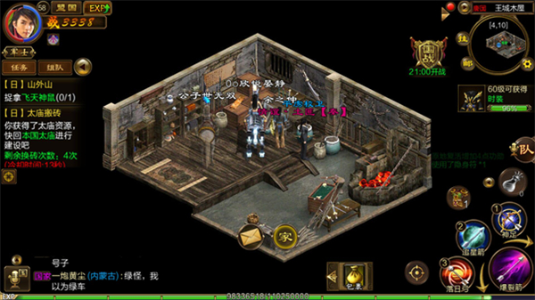 4、小木屋躲藏。火力太猛扛不住了怎么办?那就避其锋芒吧!你一定会发现太庙的东北方有一个传送点,没错,那就是传说中的小木屋,你点进去就会传送到小木屋,就会进入安全地带,等待换砖冷却时间,这种办法是最安全而且减少原地银两的方法!