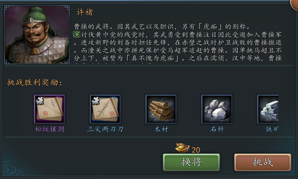 由于挑战副本不会损失兵力以及消耗兵器,因此,我们可以为部队装备兵器后进行挑战。同时,使用酒类道具可以有效地提高部队的作战能力。当部队实力和副本难度差距不大时,可以考虑通过使用酒类道具来增益部队,早日获得首通奖励。同时,如果该难度下,敌方阵容过于强大,也可以考虑点击“换将”按钮,获得随机更换对手的机会。同时,挑战名将副本,推荐各位主公在1倍速度的情况下进行手动操作,把计略和武将技能尽可能留给重要对手,同时,计略最好以控制计略为主,以增加胜算(推荐计略:火牛阵,水淹七军,草木皆兵)。