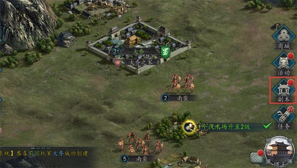 主公们可以通过主界面右侧的“副本”按钮,进入副本挑战界面。
