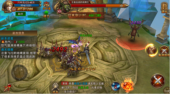 在副本中,击杀怪物会积攒怒气值,击杀地精王获得更高收益的同时也会积累更多的怒气值。怒气值满1500或副本时间用尽时,副本结束,玩家会自动传出地图。