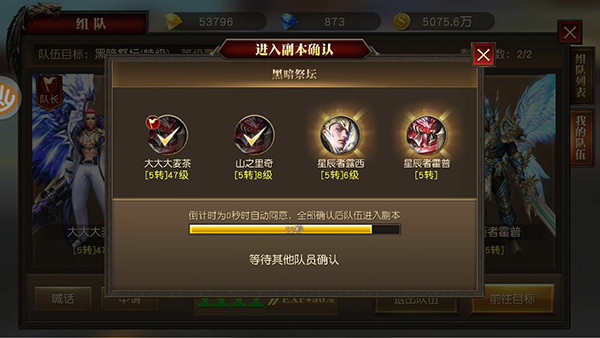 组满队员后,玩家可以点击【前往目标】,之后会进入确认界面,等待小队内所有成员确认后,才进入副本,一旦有玩家点击取消,则会重新进入组队界面。