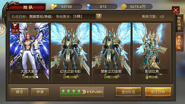 玩家点击挑战后,即可进入组队界面,玩家可以在组队列表查找其他队伍加入,也可以自己创建队伍。玩家创建队伍后,可以通过喊话和邀请来招募队友。