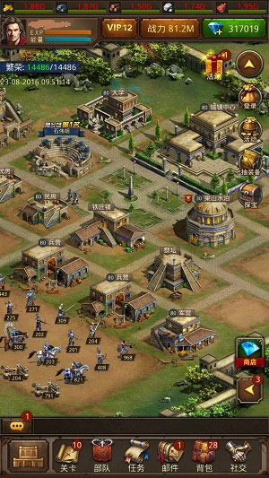兵营:可以募集士兵,提升兵营的等级,可制造更高等级的士兵