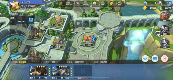 游戏里起始的建筑队列有两个,但是还可以扩充,随着玩家做任务,往后升级,后面还能自动解锁一个建筑队列,但是其他的建筑队列就需要玩家用水晶自己进行扩充了。点击游戏主界面的商城界面,然后再点击商城界面里面的道具,就能找到建筑队列了,选择购买就能自动扩充了。