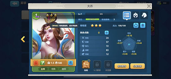 1、作为一款战略游戏,盟友间的交流配合以及计谋、战术、外交的应用都能够对战局产生巨大影响;2、几十种兵种和近百名英雄都可以任你招募挑选,玩家在这里游戏的时间越久,手下各个兵种的星级就会越高哦,让你在之后的战斗中所向披靡!