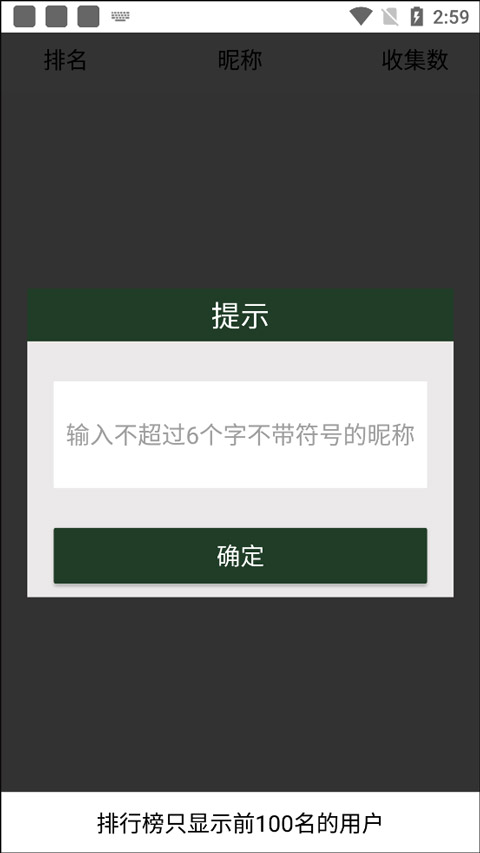 6、页底下的排行能看到用户有没有上排行榜,只能看到前一百位,可以看到昵称与收集数量。