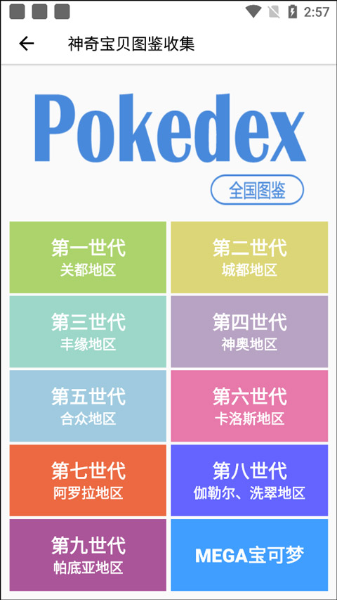 全国图鉴:包含九个世代宝可梦的基本信息;