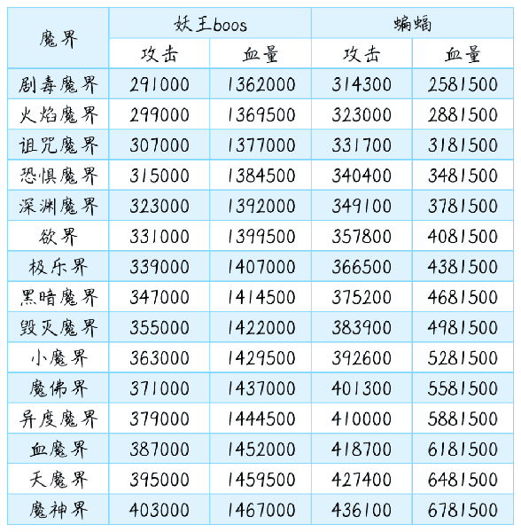 ③魔界:魔界怪物攻击最高,但是同样灵石收益与仙界相比并没有显著差别。