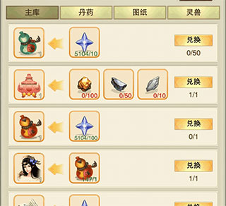 4、道童居道童宝库兑换灵草及玄铁时,长按兑换按钮可手动输入兑换数量。