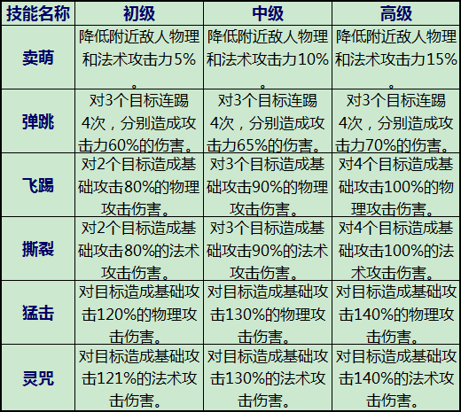 想要知道打什么,自然得先知道灵宠技能包括哪些,哪些灵宠技能又是比较好的。