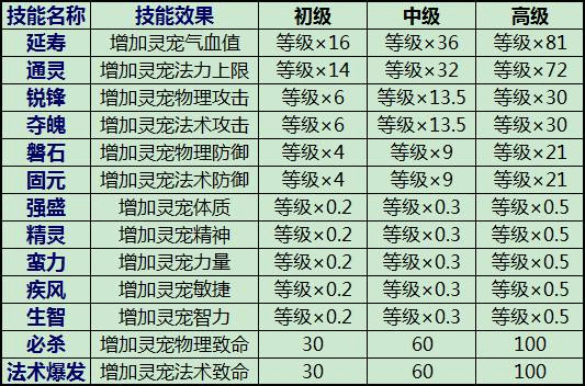 高级技能来自好的灵宠,所以大家有多个好灵宠千万不要扔了,可以通过还童来刷好技能,并摘取学习到出战灵宠上。