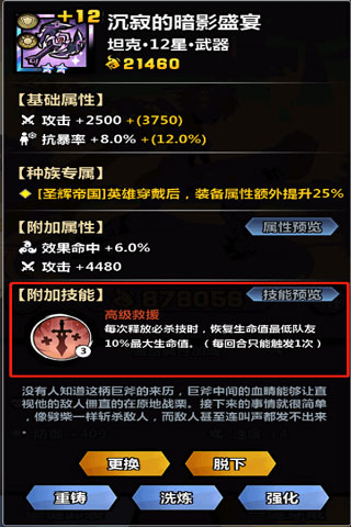 2、装备技能在装备强化至+12后会在以下装备技能中随机获得1个;