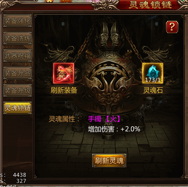 当对装备的灵魂属性不满意可以在锻造界面对灵魂锁链进行灵魂刷新操作。