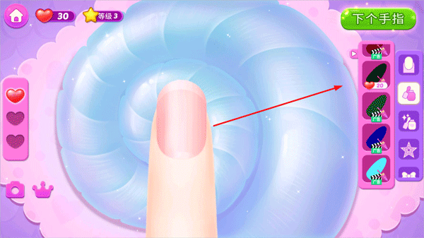 6、化好妆容之后,去做一下漂亮的美甲,点击右侧选择甲油颜色给指甲涂色;