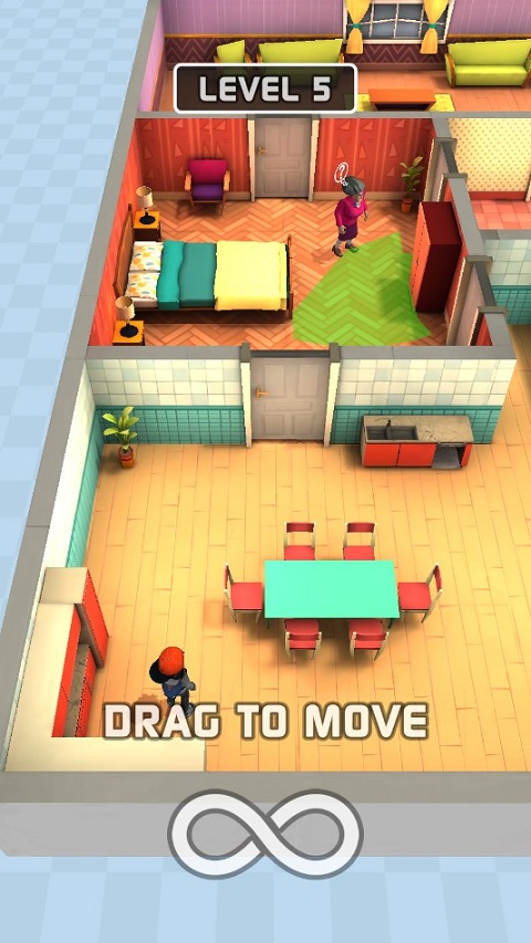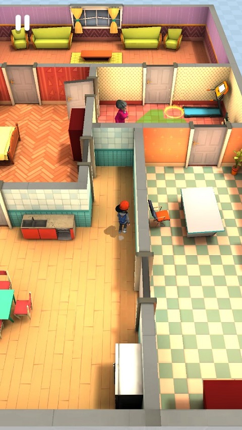 在游戏中,玩家可通过上帝视角密切关注老师的行动路径,游走于不同的房间,躲避老师的视野。拖动屏幕上的虚拟摇杆控制角色移动,辗转不同的房间,并成功抵达房间的黄色亮光区域。