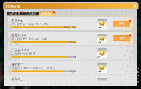 除探索和战斗行为外,收藏家也可通过完成个人任务和圈子任务来获得更多兑奖币;