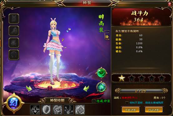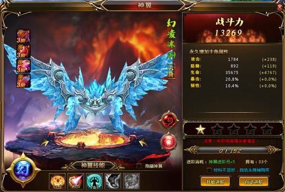 (3)神装进阶成功后,将获得更炫更酷的外型和更加强大的属性;