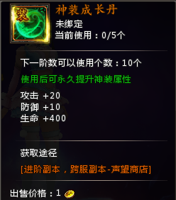 (3)神装成长丹可以通过神装进阶副本掉落或者声望商店兑换获得;