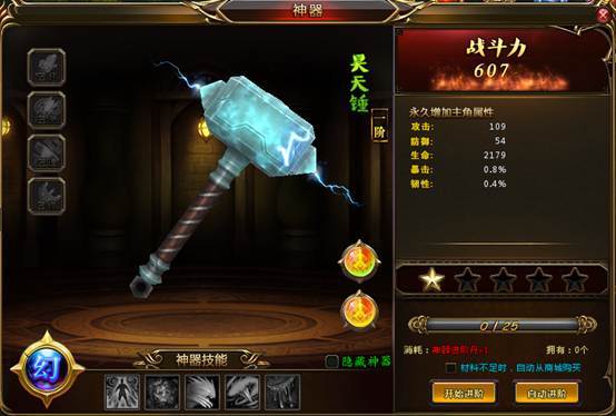 (3)神器进阶成功后,将获得更炫更酷的外型和更加强大的属性;