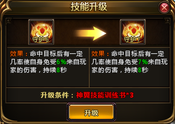 升级神翼技能需要使用神翼技能训练书道具。