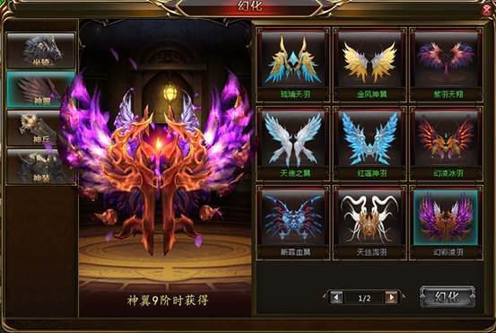 (1)神翼不仅仅只是一个交通工具,更可以增加人物角色的各项属性,提升神翼的阶数,不只增加更多的属性,并可获得更炫酷外形的高级神翼。